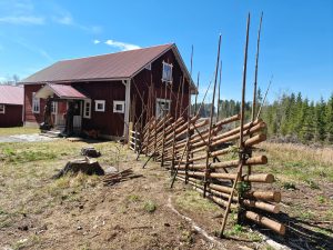 Pisteaita Niin kuin luvattiin, roudan sulettua pääsimme rakentamaan Museolle pisteaidan. Saimme mukaan myös ahkeria talkoolaisia, Jorma Huttunen, Esko Räsänen ja Mikko Leskinen. Löytyipä talkoolaisilta vielä mukaan vanha puunkuorintaan käytetty työkalu, kuorimarauta. Aidan rakentajana ja talkoolaisten ohjaajana toimi mm. Telkkämäkeen aitoja kilometrikaupalla pystyttänyt mestari Veijo Mustonen. Aidakset ja seipäät oli jo kaadettu edellisenä syksynä talven ajaksi …